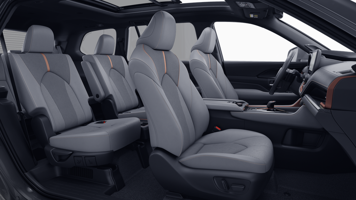 • 7-passenger seating with second-row fold-down captain's chairs and fold-down inboard armrests, adjustable headrests and two cup holders mounted on the floor; and 60/40 split, fold-down third-row seats with sliding headrests and recline function